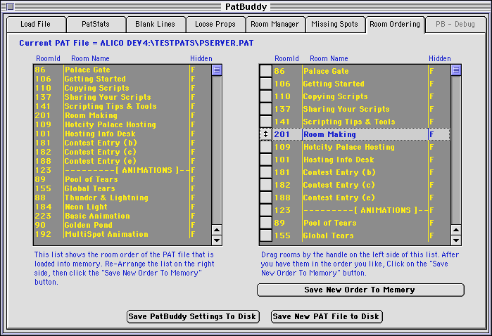 re-arrange the rooms that PatBuddy has in memory. After the re-ordering